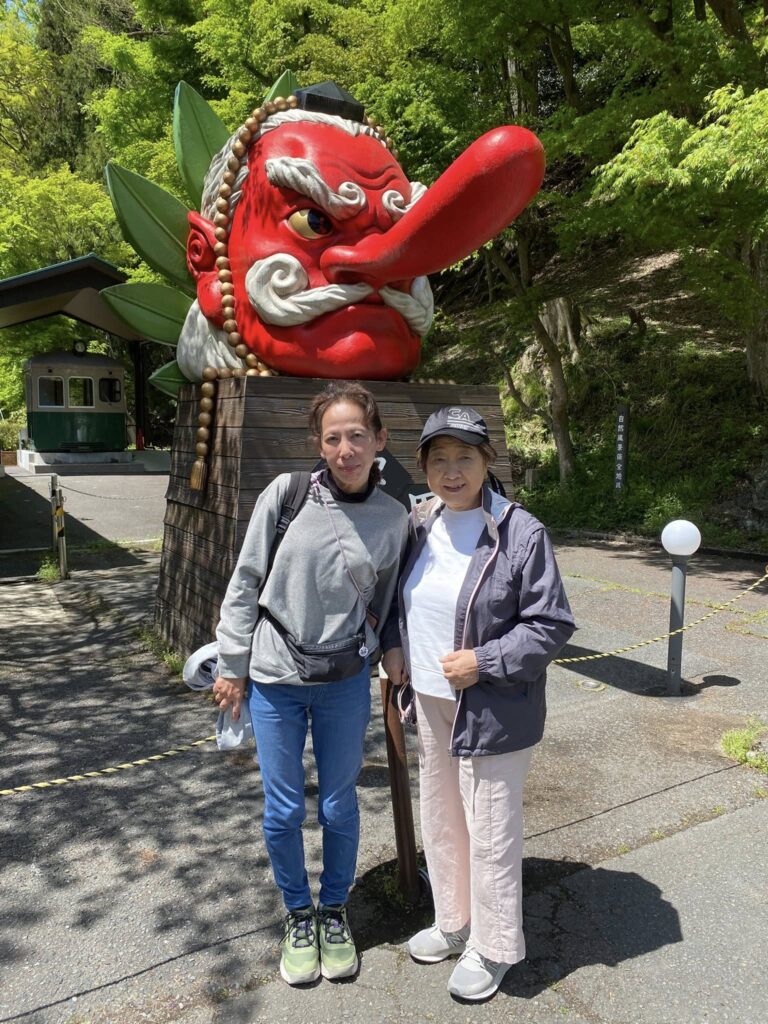 ケーブルにも乗らず休み休みながら気持ちのいい天気に恵まれ、鞍馬寺の前でも大杉権現社でも奥の院でも綺麗な景色と気をいただきながら達成できました。